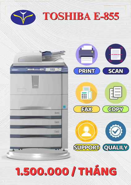 Máy Photocopy Toshiba e-Studio 855 / E855 là máy đã qua sử dụng từ các nước tiên tiến trên giới và vừa hết hạn bảo hành, máy còn mới từ 90% - 95%. Đây là dòng máy photocopy laser kỹ thuật số, đời mới, xuất hiện từ giữa năm năm 2013, nhập khẩu từ Châu Mỹ, Châu Âu với tiêu chuẩn và chất lượng rất cao, độ bền cực tốt.